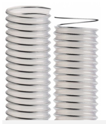 Parede de poliuretano termoplástico (TPU) resistente à abrasão, micróbios e à hidrólise. Espessura da parede 0,6mm, espiral de aço mola revestida a cobre ou zinco.